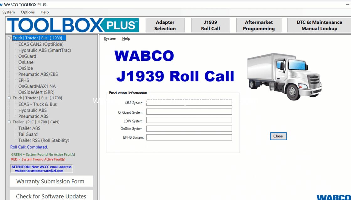 ABCO TOOLBOX PLUSهو برنامج تشخيص متقدم تم تصميمه لدعم مجموعة منتجات WABCO® الشاملة ، بما في ذلك ABS ، ومراقبة الاستقرار ، وأنظمة تخفيف الاصطدام.يسمح للفنيين بإجراء عمليات تشخيص، اختبارات النظام، وبرمجة ECU بكفاءة باستخدام واجهات مختلفة مدعومة.