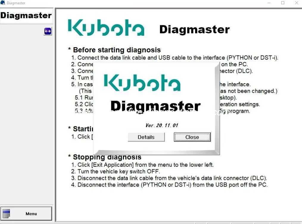 (دياجماستر)يتواصل مع عدة وحدات تحكم مركبة عبر الاتصالات المتسلسلة التقليدية وكذلك بروتوكول الحافلة الحديث CAN. مع ميزات جديدة مثل الكشف التلقائي عن المركبة،تسجيل البيانات وإرشادات حل المشاكل، منصة دياغماستر تقدم كل المعلومات التشخيصية اللازمة لتحديد المشاكل المتقدمة.التصميم الفريد يجعل من السهل توسيع وتحديث لدعم أنظمة إدارة جديدة والمركبات. يحتوي Diagmaster على قاعدة بيانات من Merlo ، All ، Dieci ، Bobcat ، Manitou ، Nonself ، Kubota ، Carrier ، Takeuchi و CNH ، يحمل مستوى 9