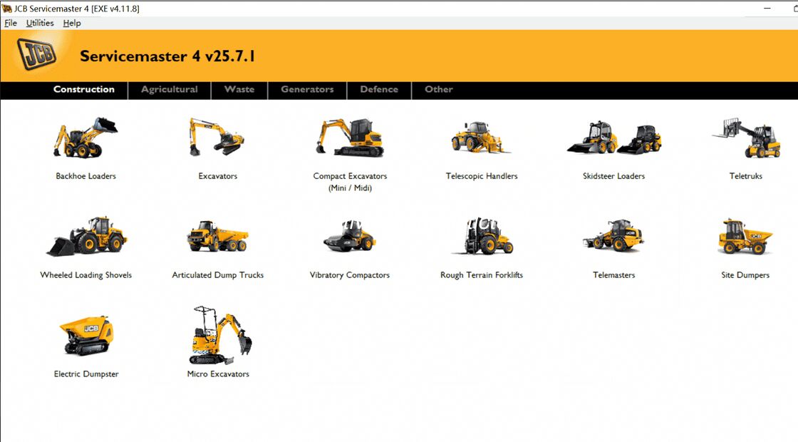 يشمل البرنامج معلومات عن: البناء: 1محمولات الحفر الخلفية (حاملات الحفر الخلفية المدمجة ، محمولات الحفر الخلفية 3DX سلسلة الهند) 2الحفارات (آلات AMS ، آلات DECU ، سلسلة X ، الحفارات (الترطيب) ، آلات الهند DECU). 3الحفارات المدمجة ميني / ميدي (آلات سلسلة 8000 ، آلات NXG) 4أجهزة التعامل التلسكوبية (2007-، 2007+، المستوى 4، 525-60 الحمولة المدمجة، 430 Dieselmax) 5محمولات السكيد ستير (الروبوت، محمولات السكيد ستير، ومحمولات المسار المدمج، محمولات السكيد ستير الهند) 6تيلترك (مستوى 4 تيلترك) 7أدوات تحميل العجلات (المدمجة، المتوسطة، الكبيرة، العالمية WLS، Telemasters) 8شاحنات القمامة المفصلة 9المكثفات الاهتزازية (المستوى 3 ، المستوى 4 المؤقت ، VMT380/430 ، VM116) 10أجهزة الرافعة الشوكية على الأراضي العريضة (المستوى 2/3 RTFL، المستوى 4 RTFL) 11أجهزة الاتصال عن بعد (TM 220، TM 310، TM 320 T4i، TM 320 Tier 4 Final Mk 1، TM 320 Tier 4 Final Mk 2، TM 420 Tier 4 Final) 12الموقع المضطرب